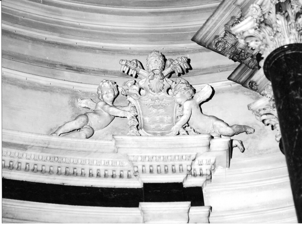 Figure: angioletti. Insegne ecclesiastiche: triregno; chiavi decussate