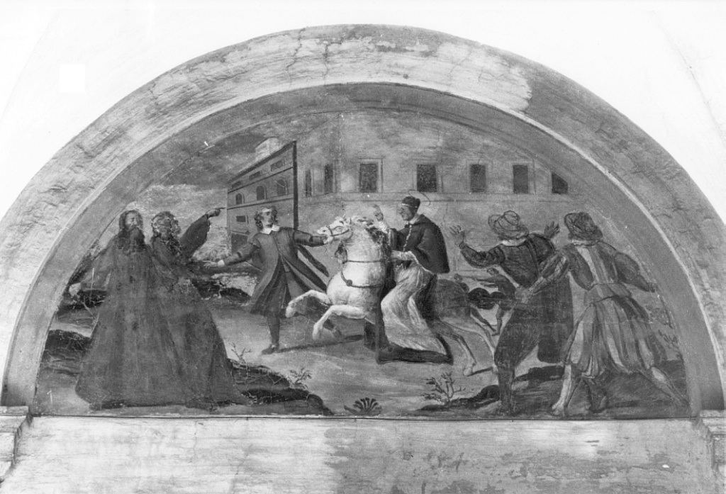 Personaggi: san Gregorio Magno. Figure: religiosi; civili. Animali: cavallo. Architetture: palazzo