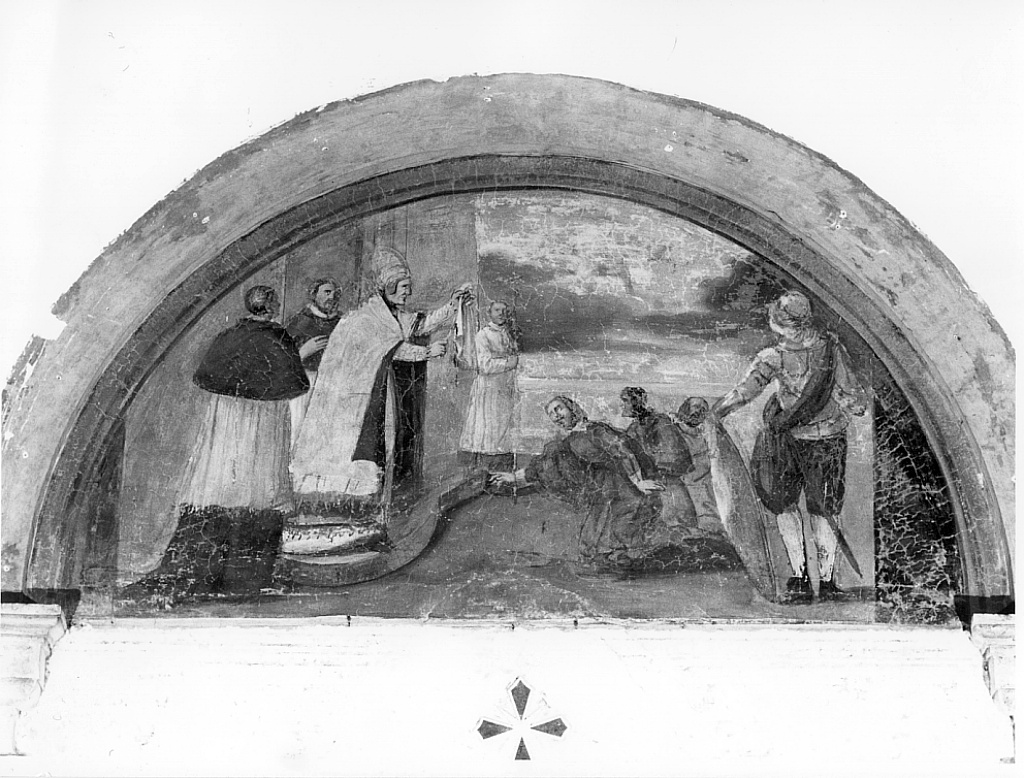 Personaggi: san Gregorio Magno. Figure: religiosi; laici. Abbigliamento religioso. Attributi: (Gregorio magno) tiara; piviale; dalmatica