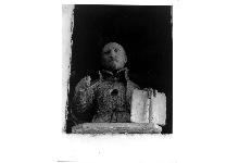 Il busto è poggiato su una base a rocco, a sua volta posta su un piedistallo in finto marmo, con monogramma cristologico centrale. Il santo, vestito in abito gesuita, con volto stempiato e baffi, volge lievemente il capo verso destra.. Personaggi: Sant'Ignazio di Loyola