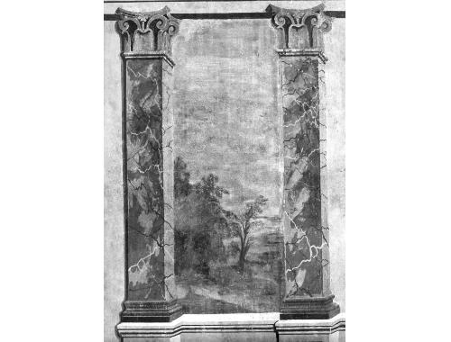 scorcio di paese tra due pilastrini di marmo (dipinto)