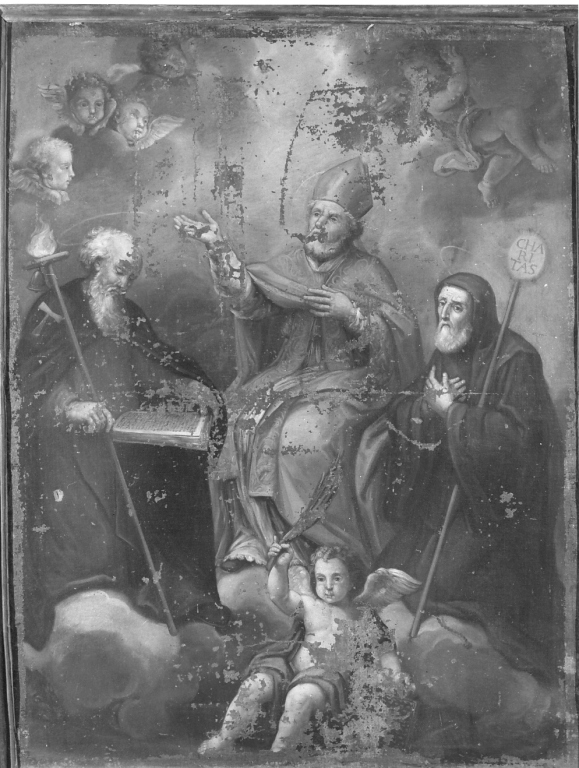 Personaggi: Sant'Antonio Abate; San Francesco di Paola. Attributi: (Sant'Antonio Abate) bastone con campanello. Figure: cherubini; angeli