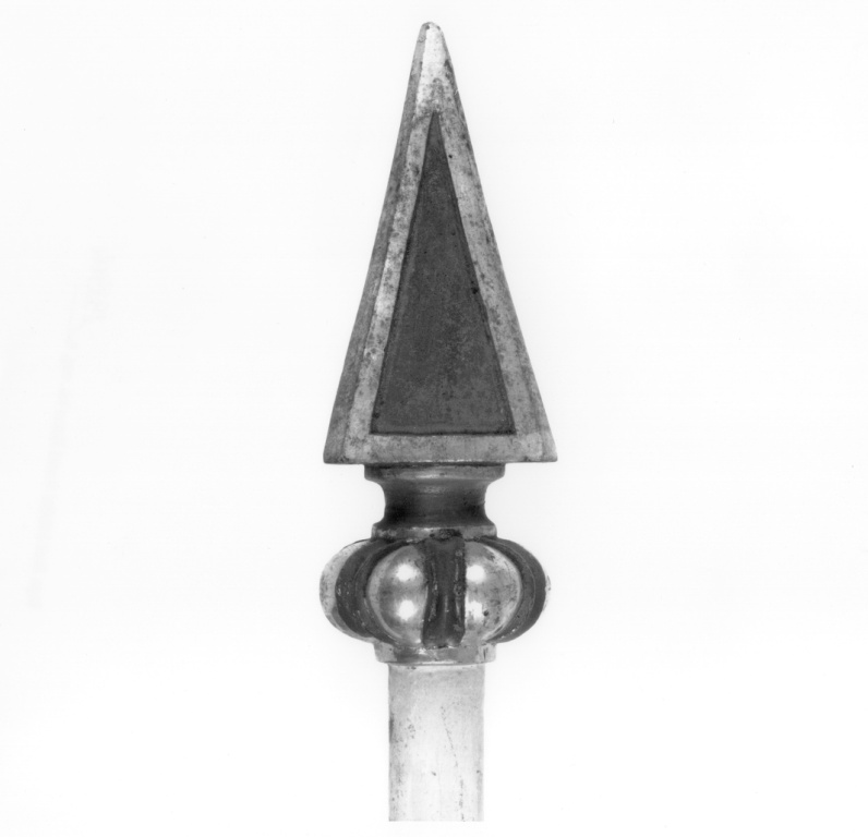 consta di terminazione piramidale dipinta in rosso ove il sottostante pomello a strisce egualmente dipinto
