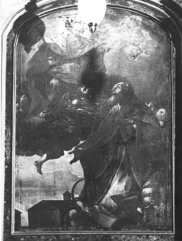 Personaggi: Dio Padre; San Clemente. Attributi: (San Clemente) ancora; emblemi vesvovili. Figure: tre angeli. Fenomeni divini: apparizione di Dio