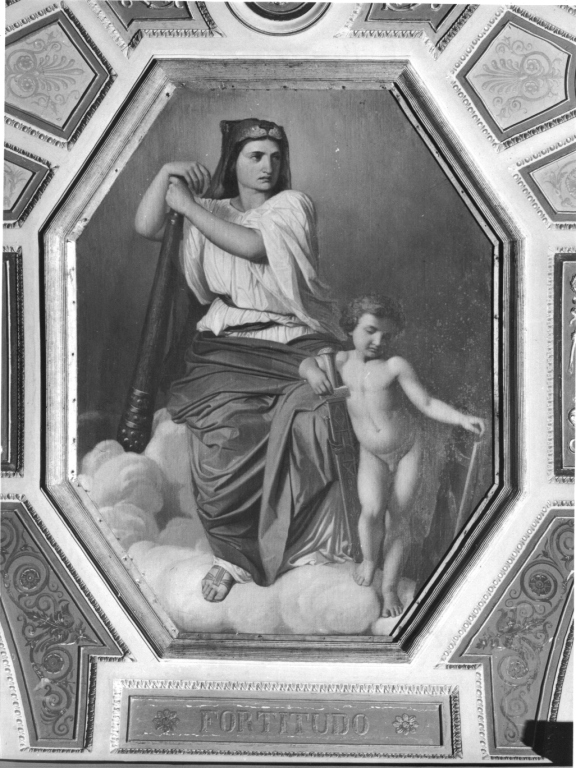 Personificazioni: Fortezza. Attributi: (Fortezza) clava; pelle di leone; spada; scudo. Figure maschili: bambino