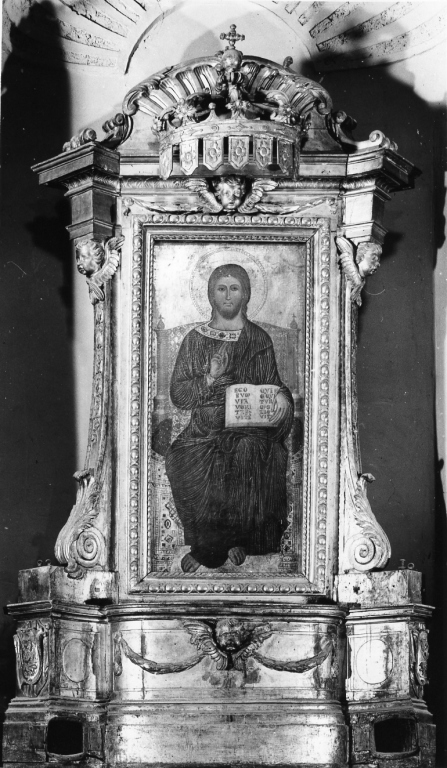 Personaggi: Gesù Cristo. Oggetti: libro; trono