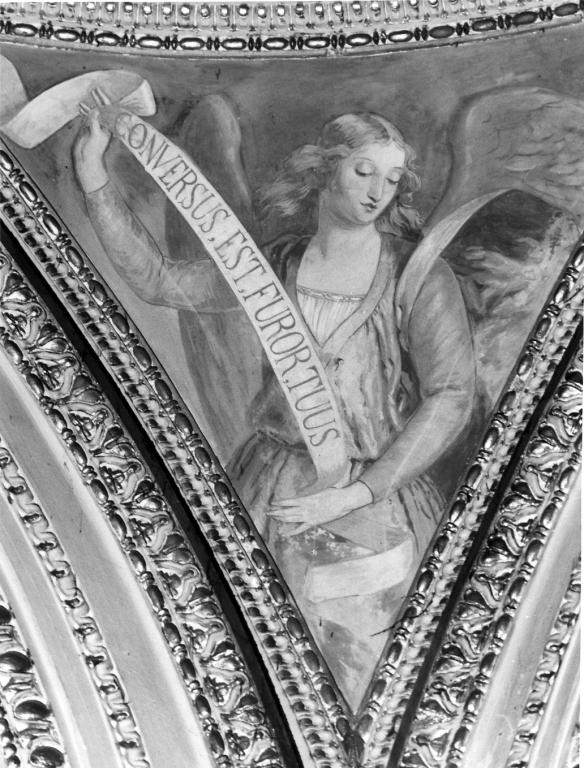 La decorazione è costituita da quattro angeli reggicartiglio, disposti entro le partiture triangolari dei pennacchi.