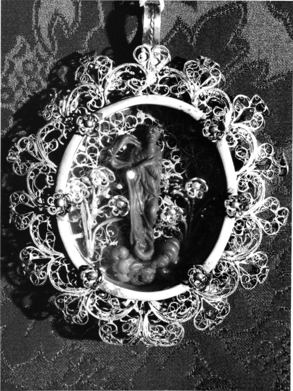 Personaggi: Madonna. Attributi: (Madonna Immacolata) falce di luna. Figure: cherubino. Fenomeni metereologici: nube