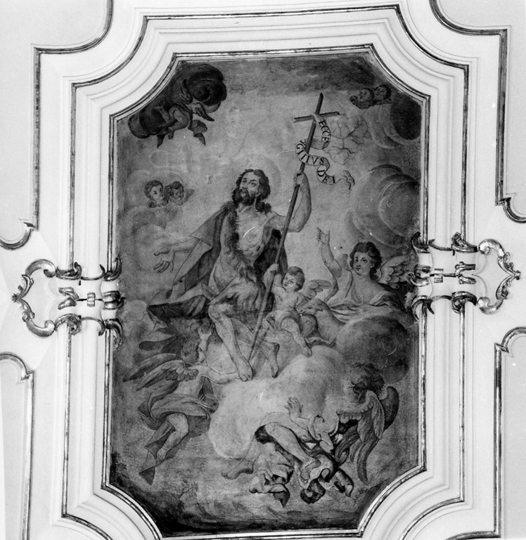 Personaggi: San Giovanni Battista. Attributi: (Giovanni Battista) vello; croce di canne; cartiglio
