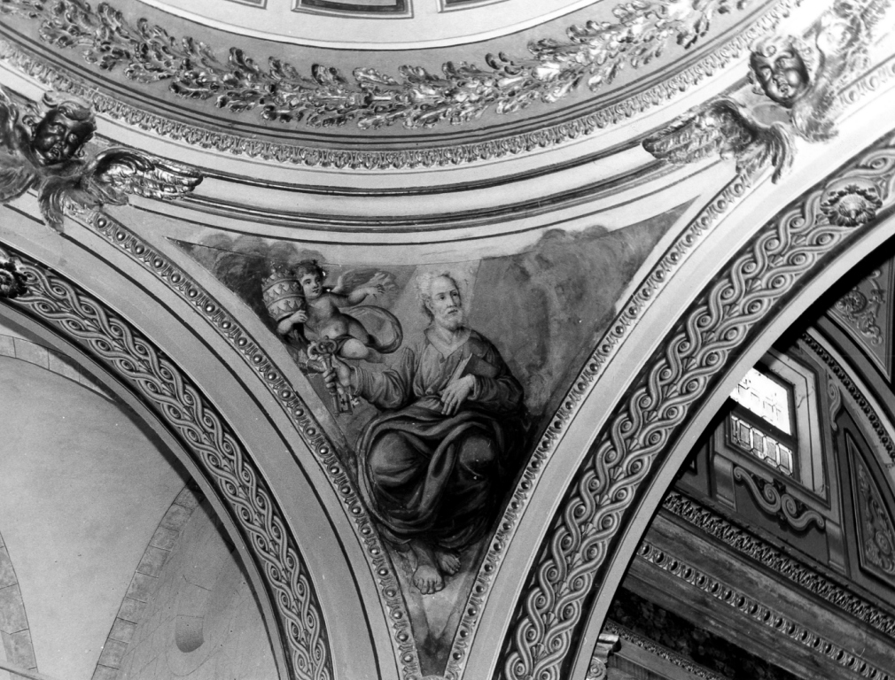 Personaggi: San Pietro; Sant'Andrea; San Rocco. Figure: santo; angeli. Attributi: (San Pietro) chiavi; tiara. Attributi: (Sant'Andrea) croce. Attributi: (San Rocco) bastone