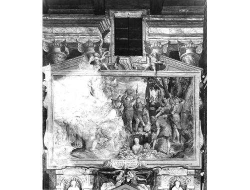personaggi: san Vitale; figure: carnefici; angelo; attributi: palma e coro na (s. Vitale) ; elementi decorativi: cornice architettonica a volute conc lusa da timpano spezzato