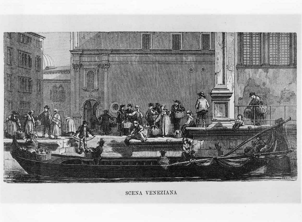 Architetture. Mezzi di trasporto: gondola. Figure maschili. Figure femminili. Oggetti: cesti