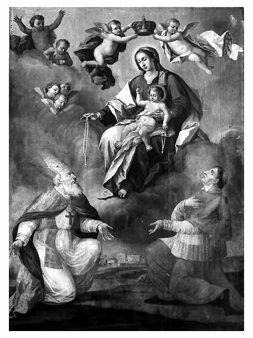 La Vergine del Rosario incoronata, angeli, san Carlo Borromeo e san Ricca rdo (?). Personaggi. Figure