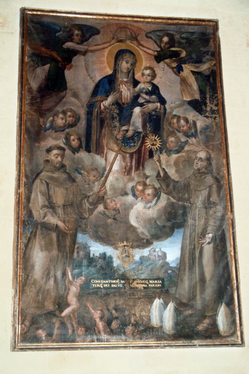 Santa Maria di Costantinopoli, san Francesco d'Assisi, san Bernardino, angeli, cherubini, anime purganti
