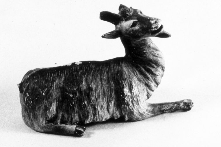 Piccola capra seduta (statuetta di presepio)