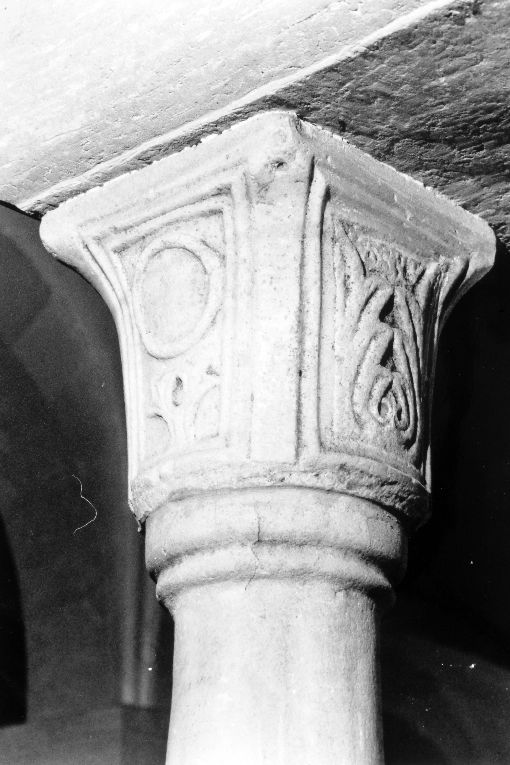 specchiature con cerchio, croce latina, rametto con foglie, mezze palmett e (capitello)
