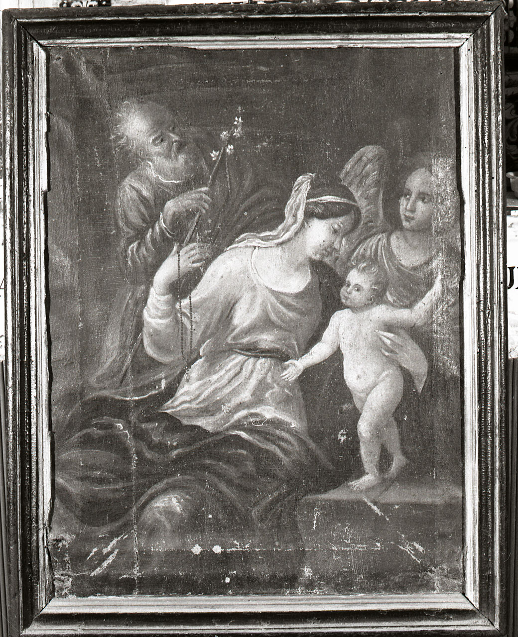 Dipinto. Personaggi: Madonna. Personaggi: s. Giuseppe. Personaggi: Gesù Bambino. Personaggi: angelo