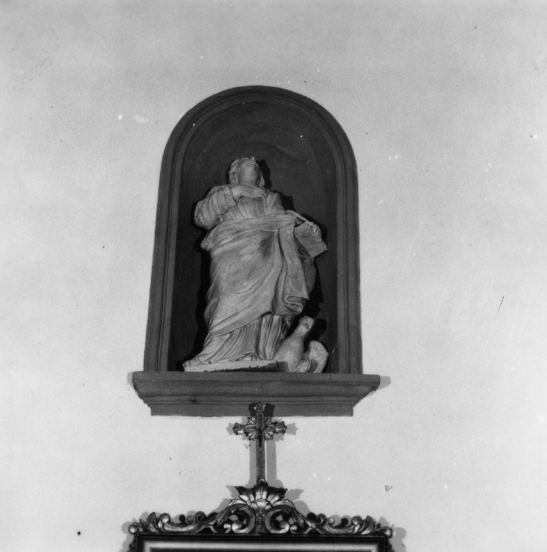 Una di quattro statue raffiguranti i quattro evangelisti. L'evangelista Giovanni è raffigurato con libro e acquila. Ciascuna statua è in terracotta dipinta di bianco ed è collocata in una nicchia scavata in ciascuna parete della sacrestia.