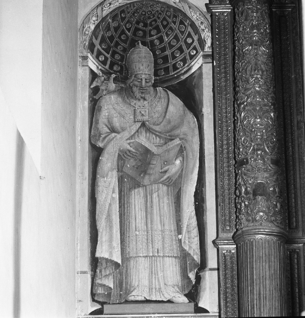 dipinto. Personaggi: san Gregorio Magno. Attributi: (san Gregorio) libro. Attributi: (san Gregorio) colomba. Elementi architettonici: nicchia