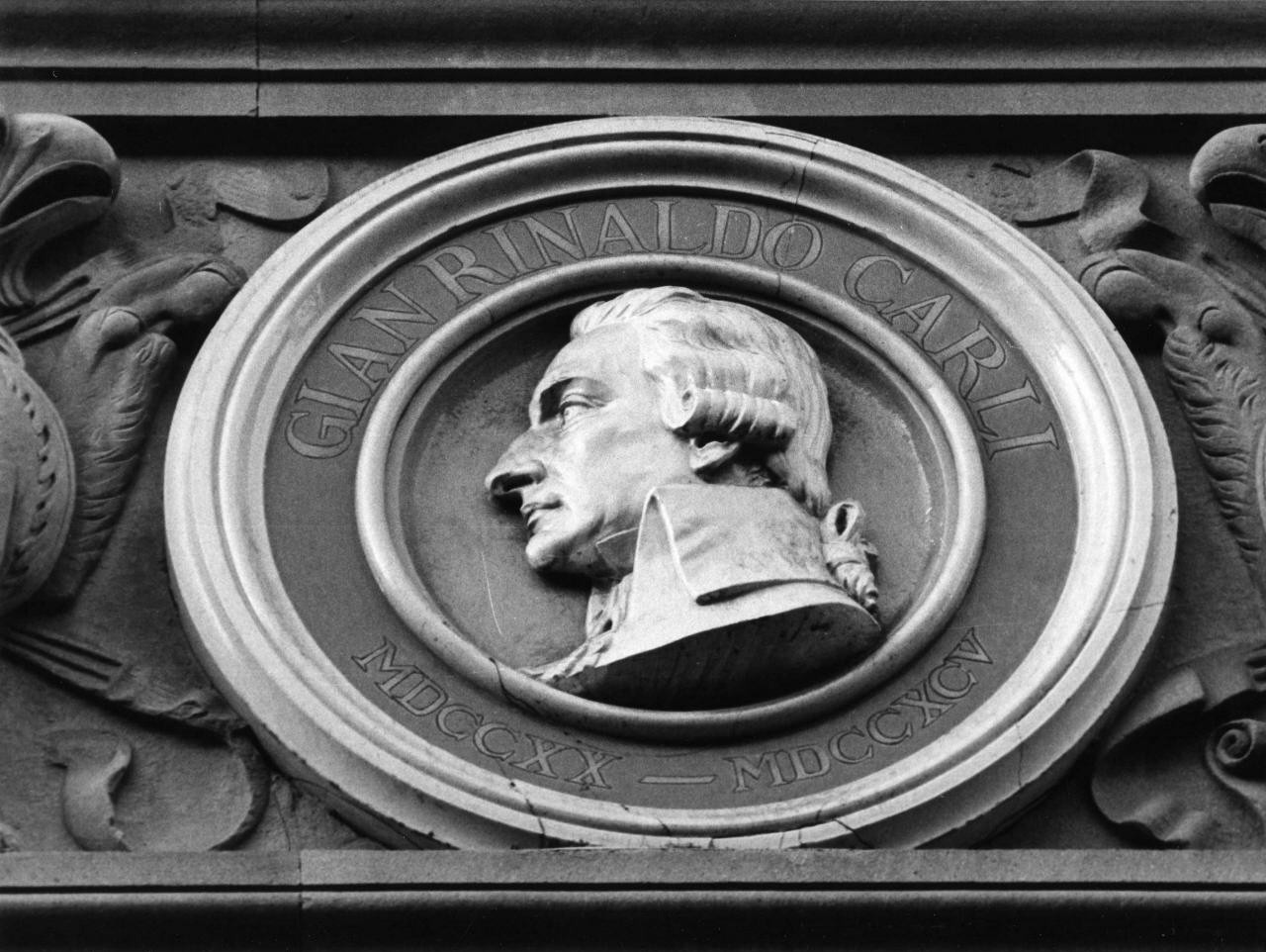 Il medaglione porta al centro effigiato il busto di Gian Rinaldo Carli e nella cornice l'iscrizione.