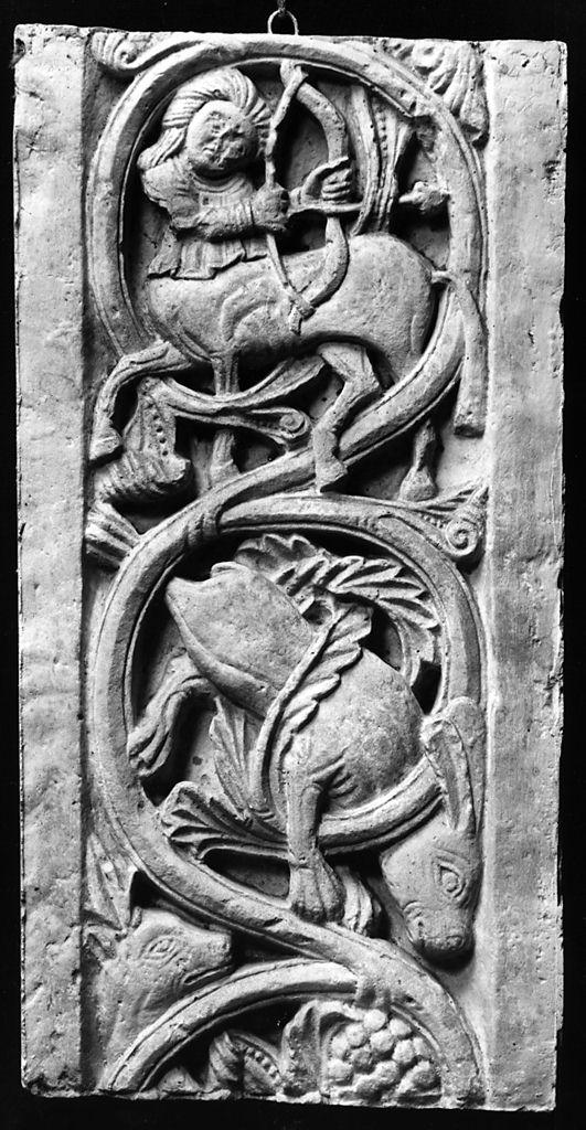 animali fantastici e motivi decorativi fitomorfi (rilievo)