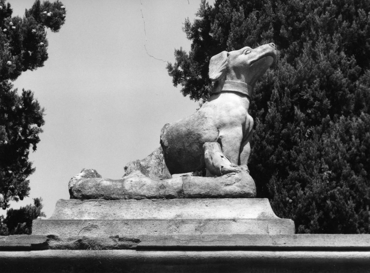 cane accucciato (scultura, frammento)