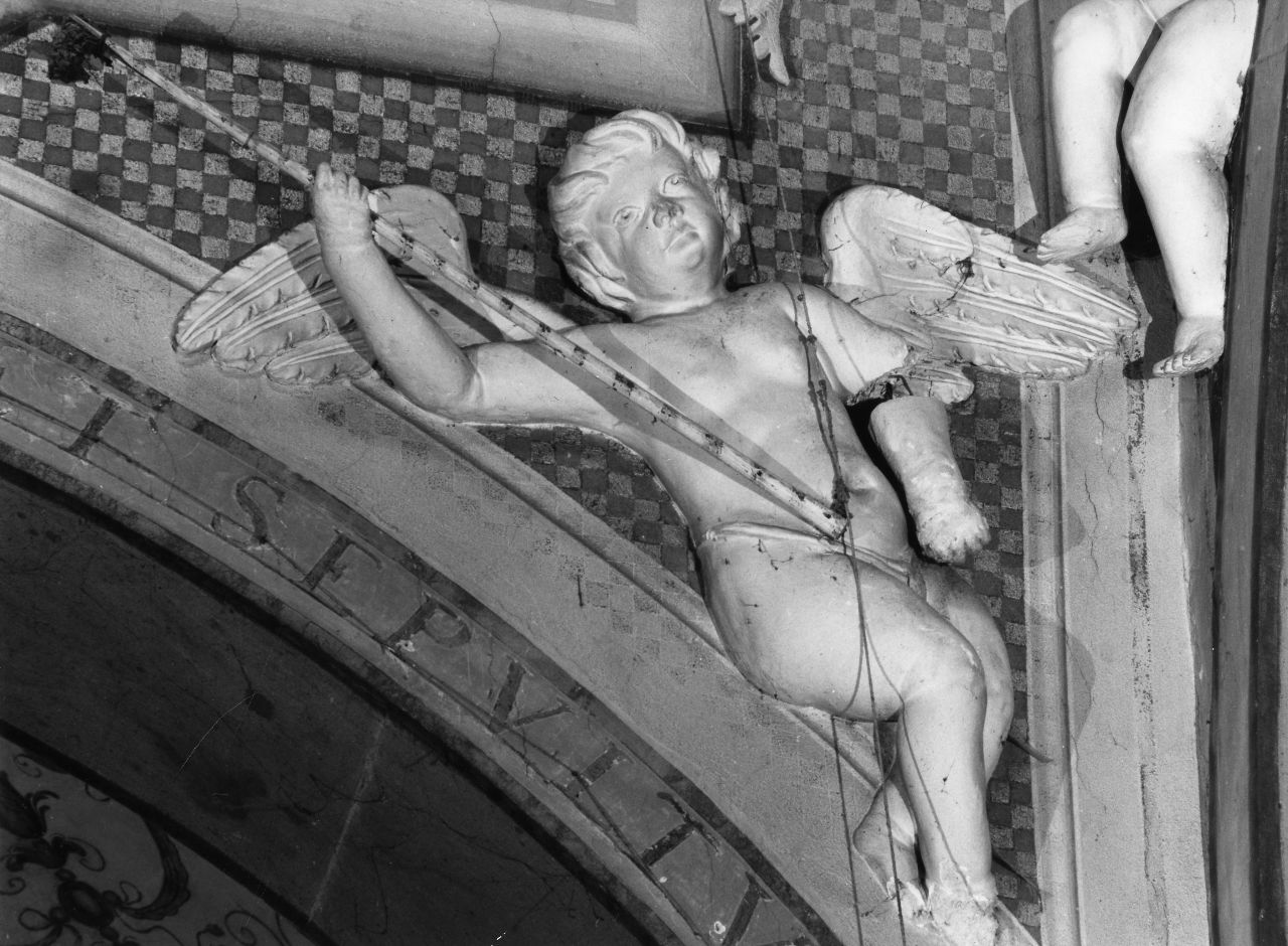 Figure: angioletti in volo. Oggetti: stendardo; lancia