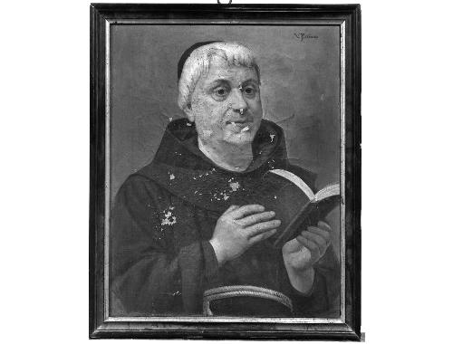 Figure: frate. Abbigliamento religioso: abito da francescano. Oggetti: libro
