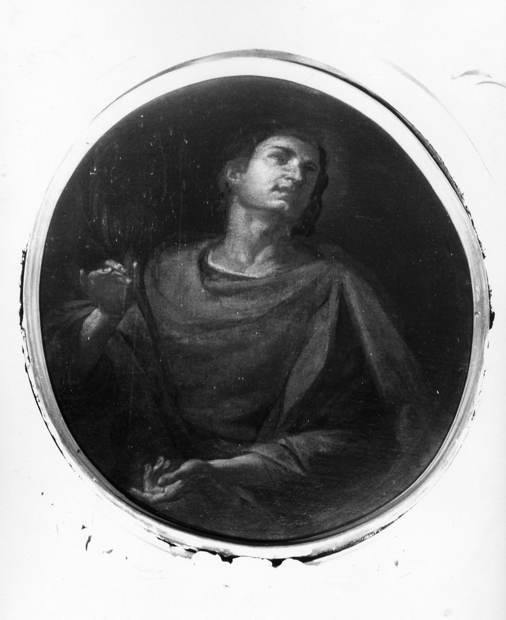 La tela è circondata da una decorazione a stucco bianco con teste di cherubino, volute e fiori.. Personaggi: San Gervasio. Abbigliamento: all'antica