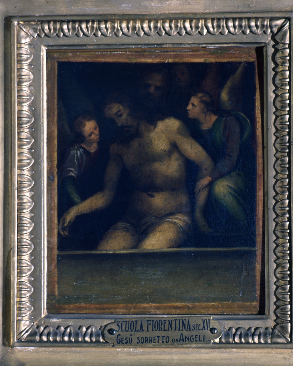 Personaggi: Dio Padre; Cristo. Figure: angeli. Architetture: sepolcro