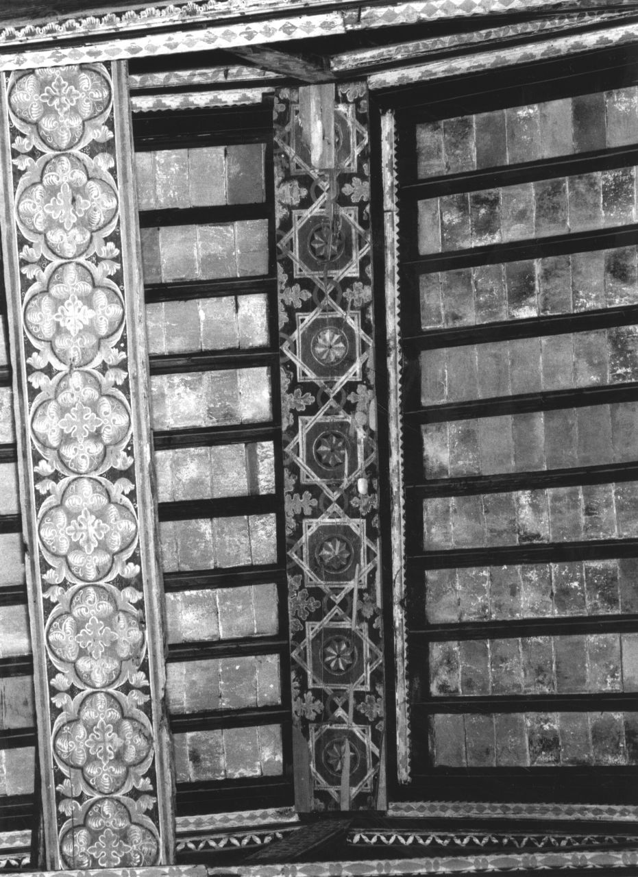 L'asse è decorata da una successione di formelle romboidali unite da cerchi e contenenti elementi decorativi a rosette stilizzate. Gli interstizi sono riempiti da foglie d'acanto stilizzate.
