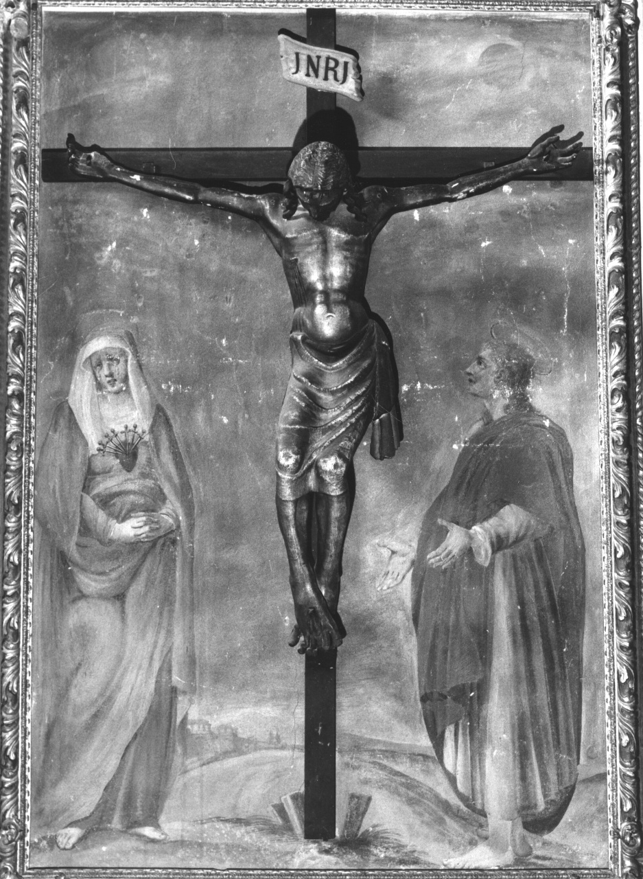 Personaggi: Madonna addolorata; San Giovanni evangelista. Abbigliamento. Attributi: (Madonna addolorata) cuore trafitto dalle sette spade. Paesaggi