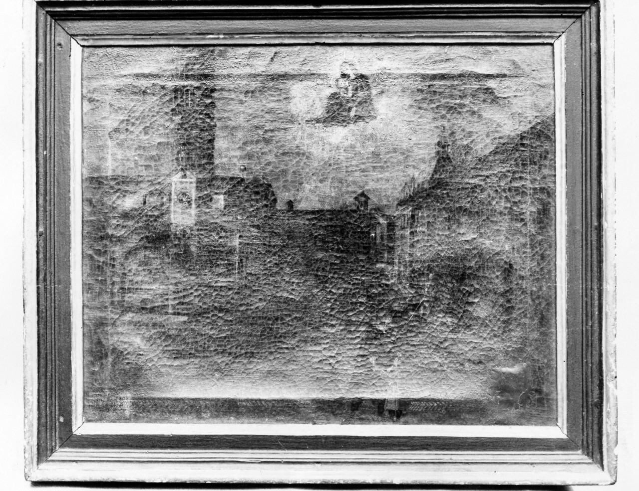 Con cornice.. Architetture: Duomo di Pistoia. Figure maschili: uomo feriti. Oggetti: fucile. Personaggi: Madonna; Bambino