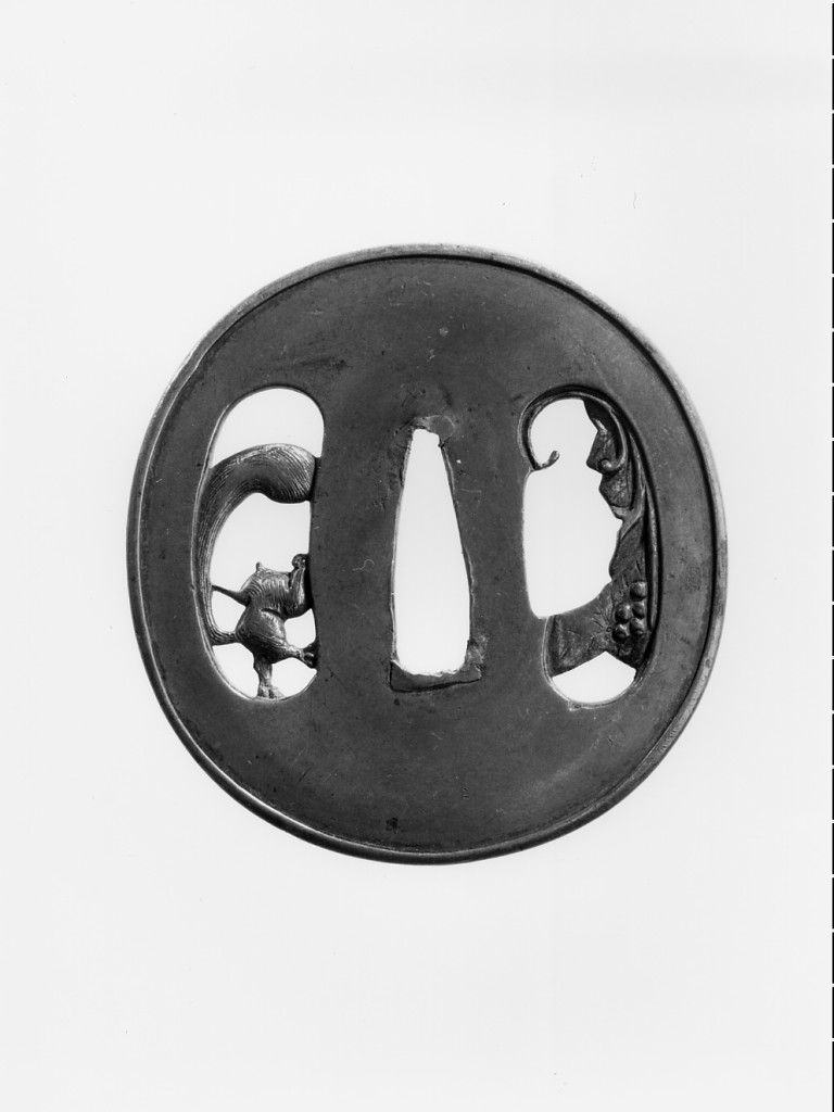 scoiattolo, ramo con foglie e bacche (guradamano da sciabola - tsuba ovale)