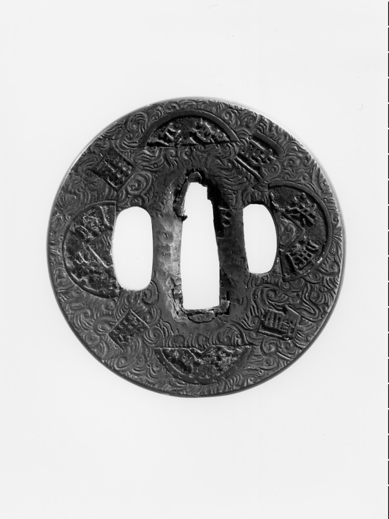 motivo decorativo a viticcio e mezze monete (guradamano da sciabola - tsuba circolare)
