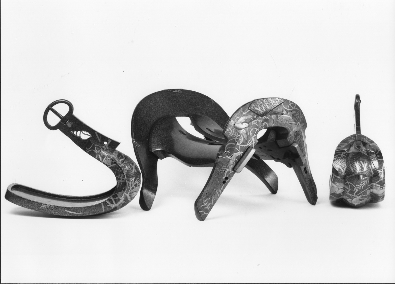 uccelli e spighe, sonagli di legno e bambù (sella - kura, elemento d'insieme)
