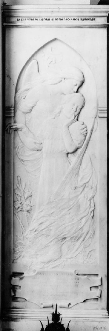monumento formato da una lastra marmorea di formato rettangolare con rilievo raffigurante l'angelo della Morte che dà l'ultimo bacio alla fanciulla defunta. Nella parte sottostante il riilevo una cartella sagomata accoglie la memoria funebre.