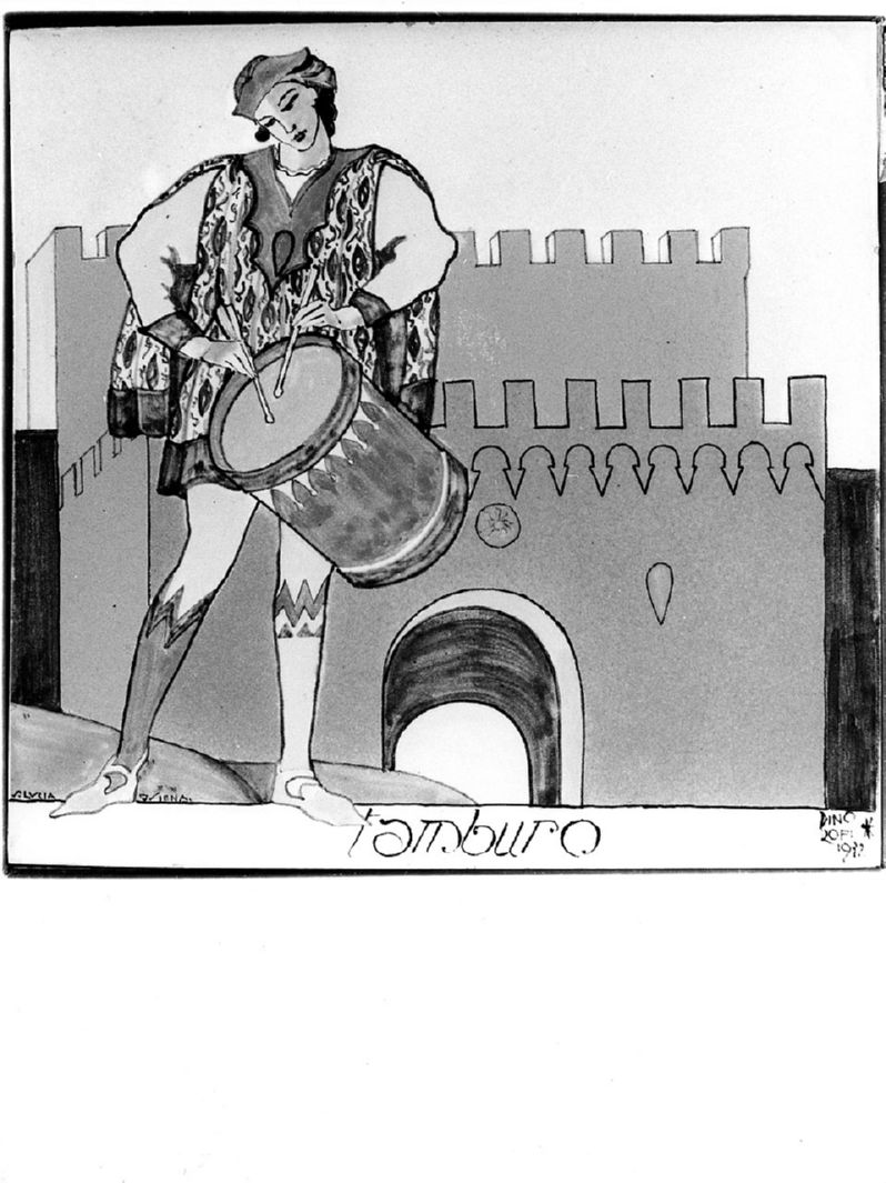 tamburino della contrada del Bruco davanti a Porta Ovile (dipinto)