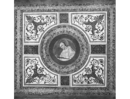 dipinto policromo inserito entro cornice dipinta di formato quadrangolare. Personaggi: beato Bernardo Tolomei che tiene in mano un Crocifisso