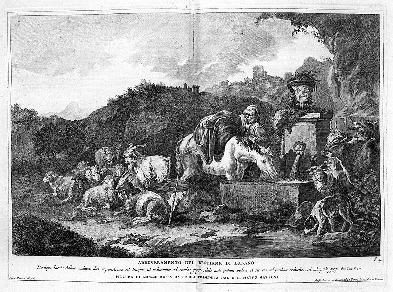 Giacobbe conduce l'armento di Labano al pascolo (stampa, elemento d'insieme)