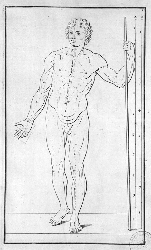 figura maschile nuda con bastone (stampa, elemento d'insieme)