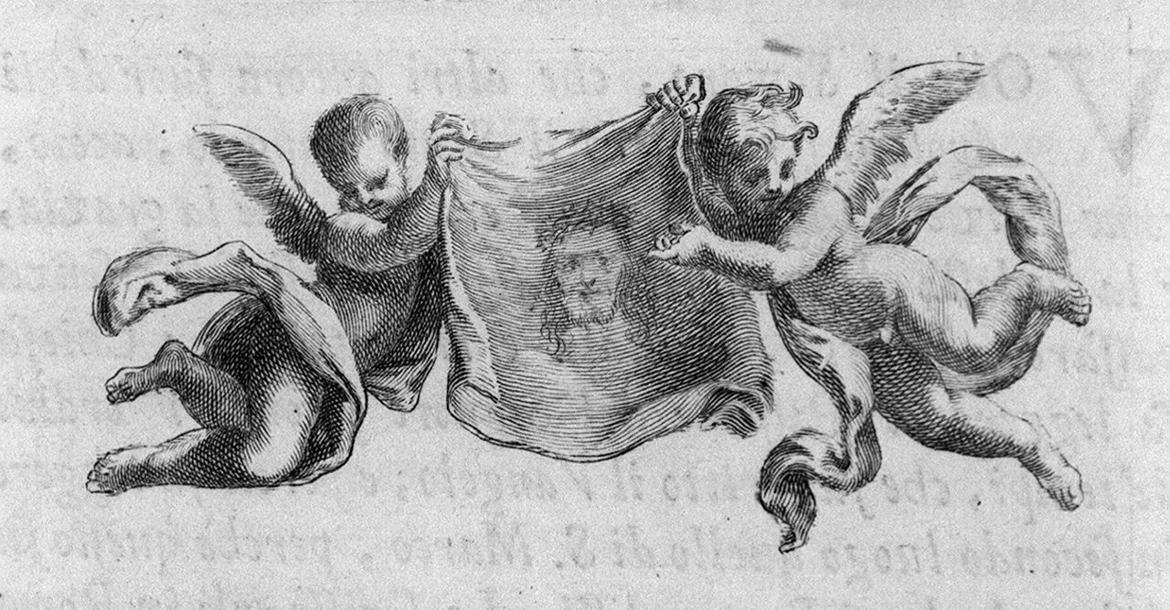 angeli con simbolo della passione: sacra sindone (stampa)