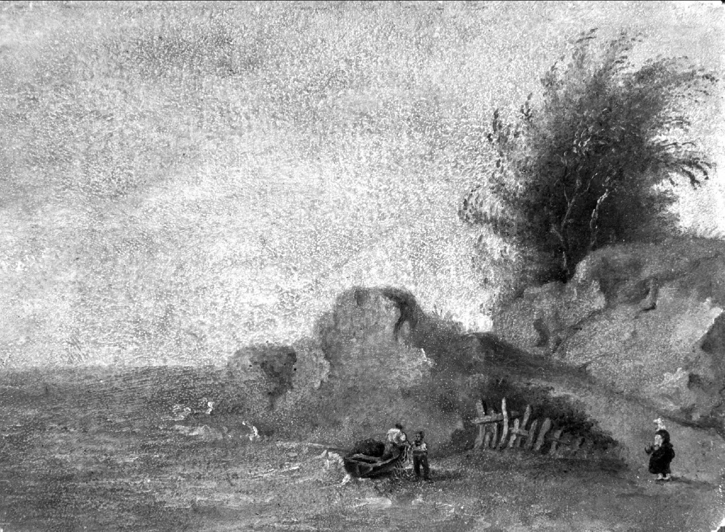 Paesaggi: marina. Figure: pescatori; donna. Oggetti: barca