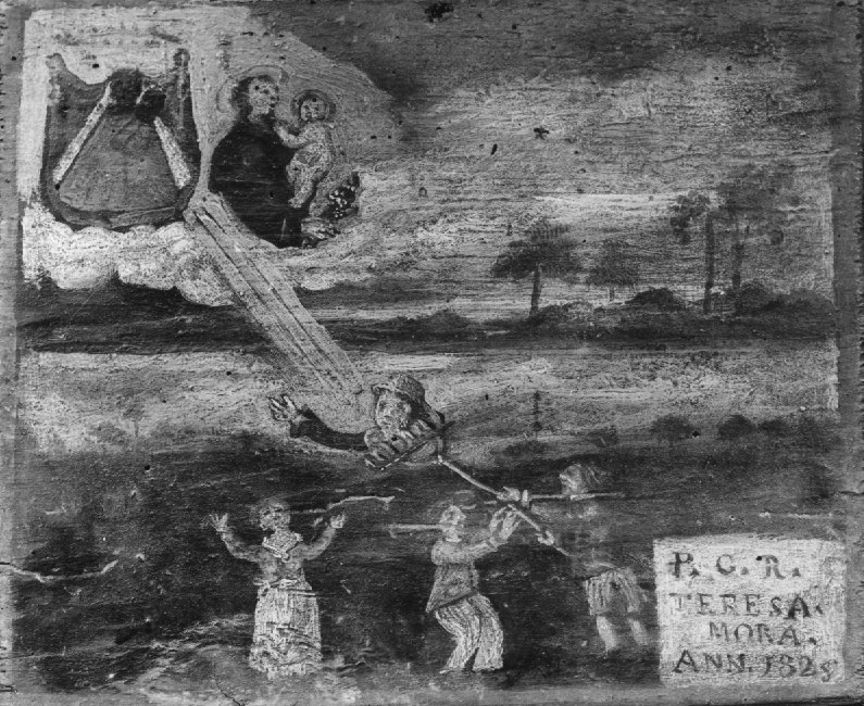 caduta nel fiume, dipinto