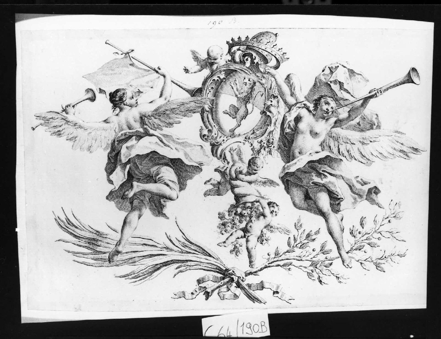 Allegorie-simboli: Fama. Attributi: (Fama) trombe; figure femminili alate. Araldica: stemma della famiglia Pisani. Figure: putti alati. Decorazioni: nastro; cornucopia. Vegetali: rami di palma; rami con bacche