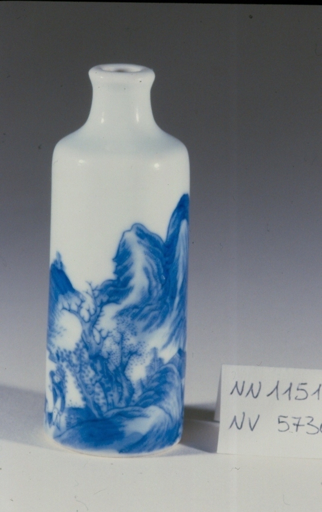 Tabacchiera yanhu di forma cilindrica con spalla leggermente montante, collo ad imbuto e imboccatura ad anello.