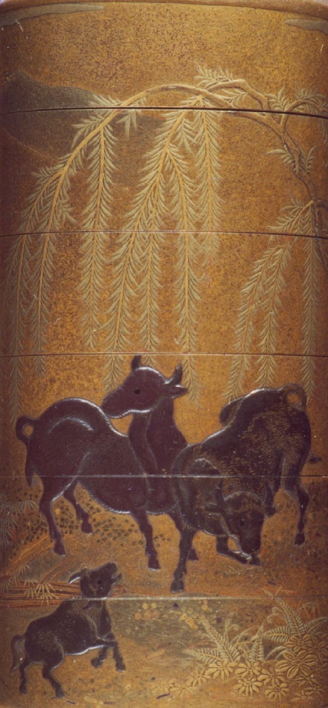 bufali, corso d'acqua e salici (inro, opera isolata)
