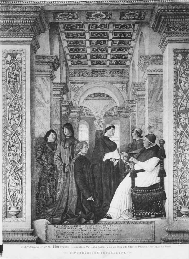 Dipinti - Sisto IV da udienza allo Storico Platina; Melozzo da Forlì/ Sisto IV da udienza allo Storico Platina/ Pinacoteca Vaticana/ Roma (positivo)