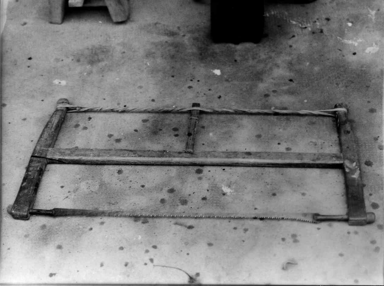 Trattasi di un telaio a forma di H in legno, una fune lega le estremità dei montanti superiori ed è posta in tensione da una nottola centrale.Alle estremità opposte dei montanti è fissata una lama seghettata su caviglie in legno