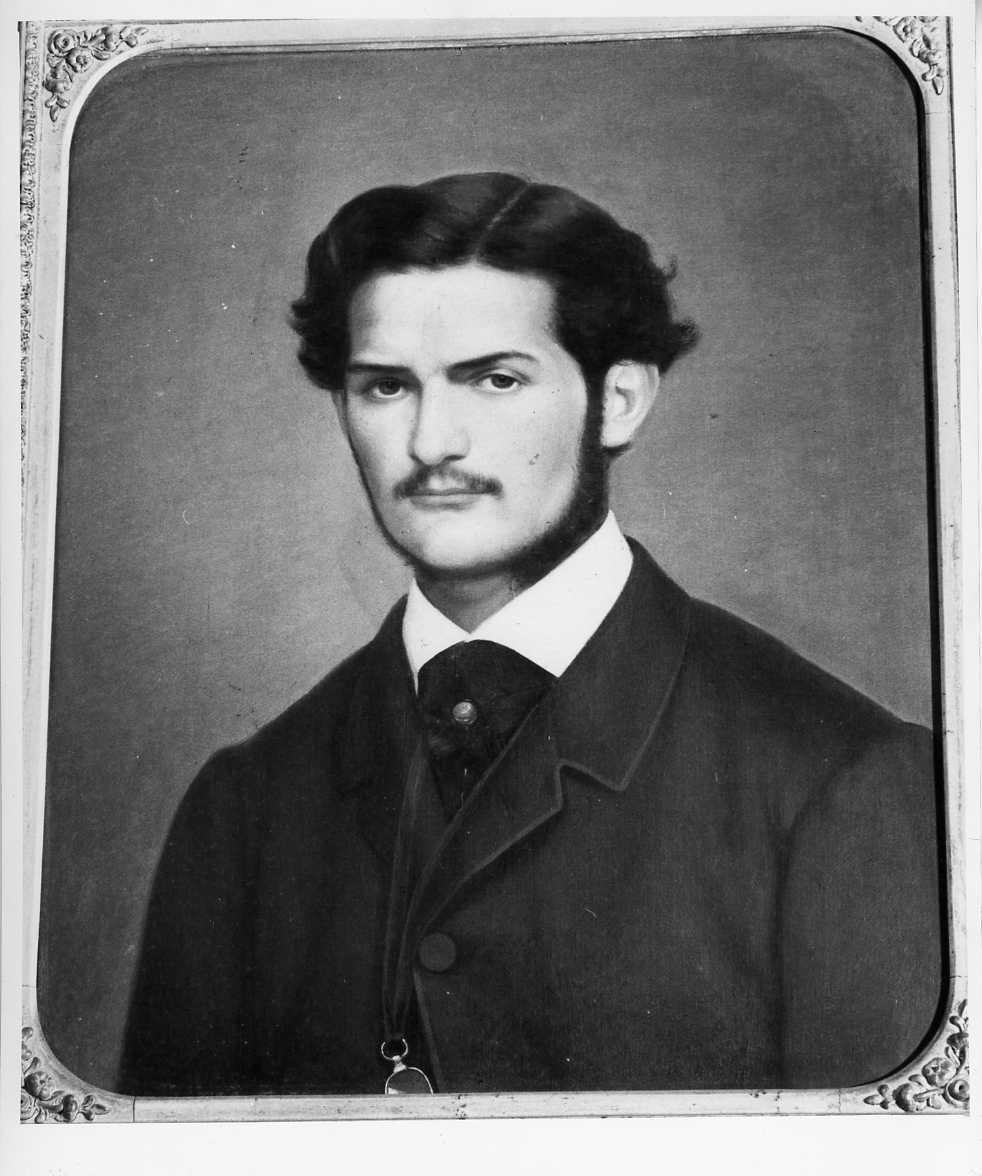 dipinto. Personaggi: Michele De Capoa. Abbigliamento: panciotto; giacca nera. Oggetti: occhialino; spilla d'oro